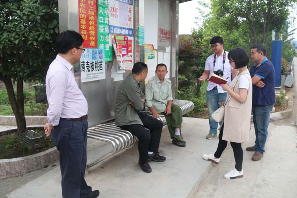 与阳龙公路沿线群众交谈